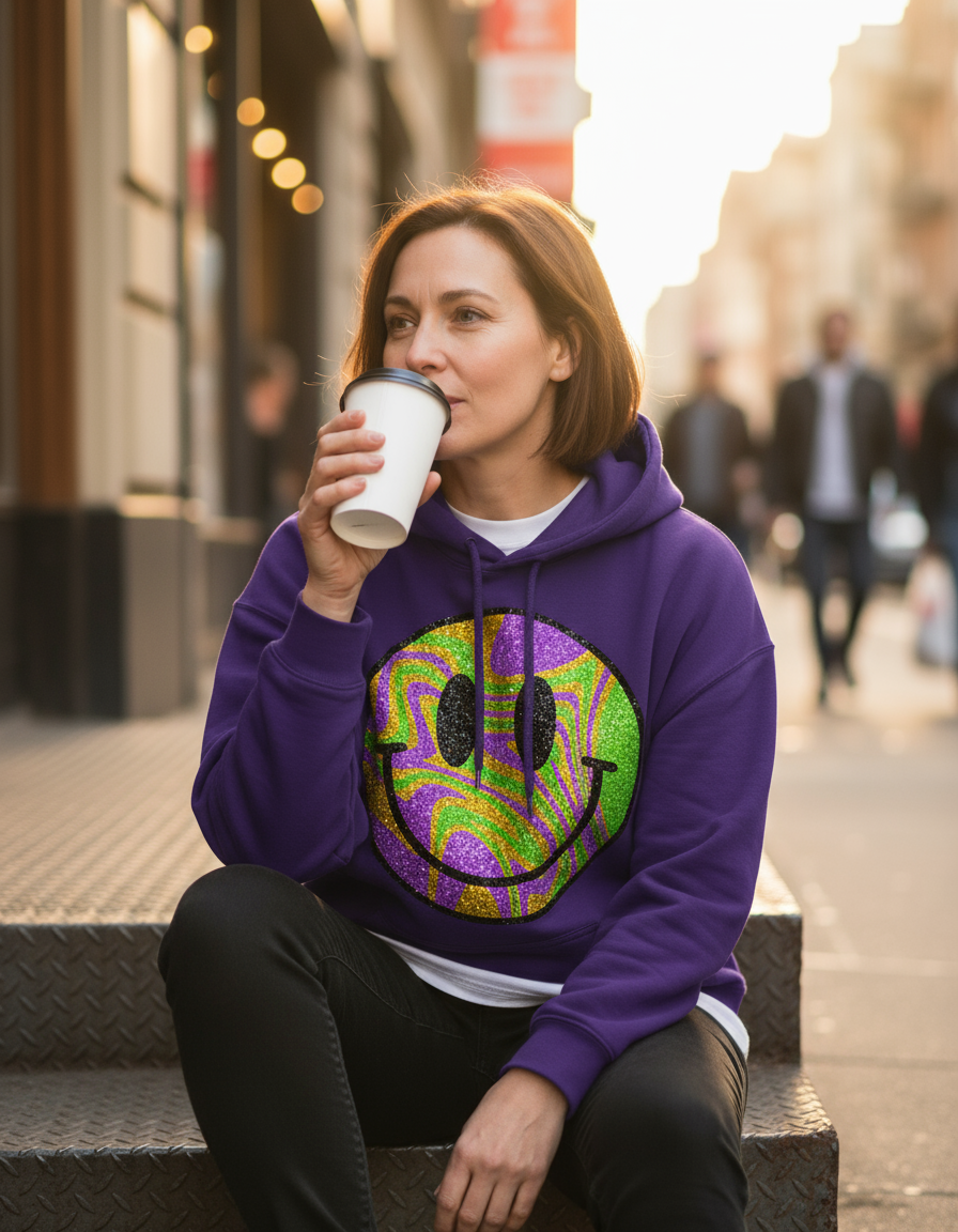 Our Acid Smiley is loud, proud, and drippin’ in 90s nostalgia. Designed for those who wear joy like armour and don’t wait for permission to shine, this glitter-print beauty brings the rave scene back to life with a bold smile that says, “I came to vibe, not to shrink.”